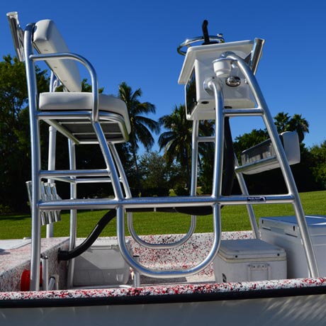 Our Flats Towers and Poling Platforms are designed individually for each boat and the needs of the client / angler. As anglers, we understand the importance of individual functionality for the angler, and for every one of our Flats Towers. Each and every angler is unique and so are our Flats Towers!